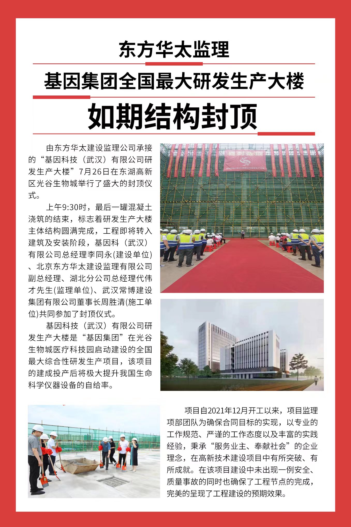 東方華太監(jiān)理 基因集團(tuán)全國最大研發(fā)生產(chǎn)大樓 如期結(jié)構(gòu)封頂