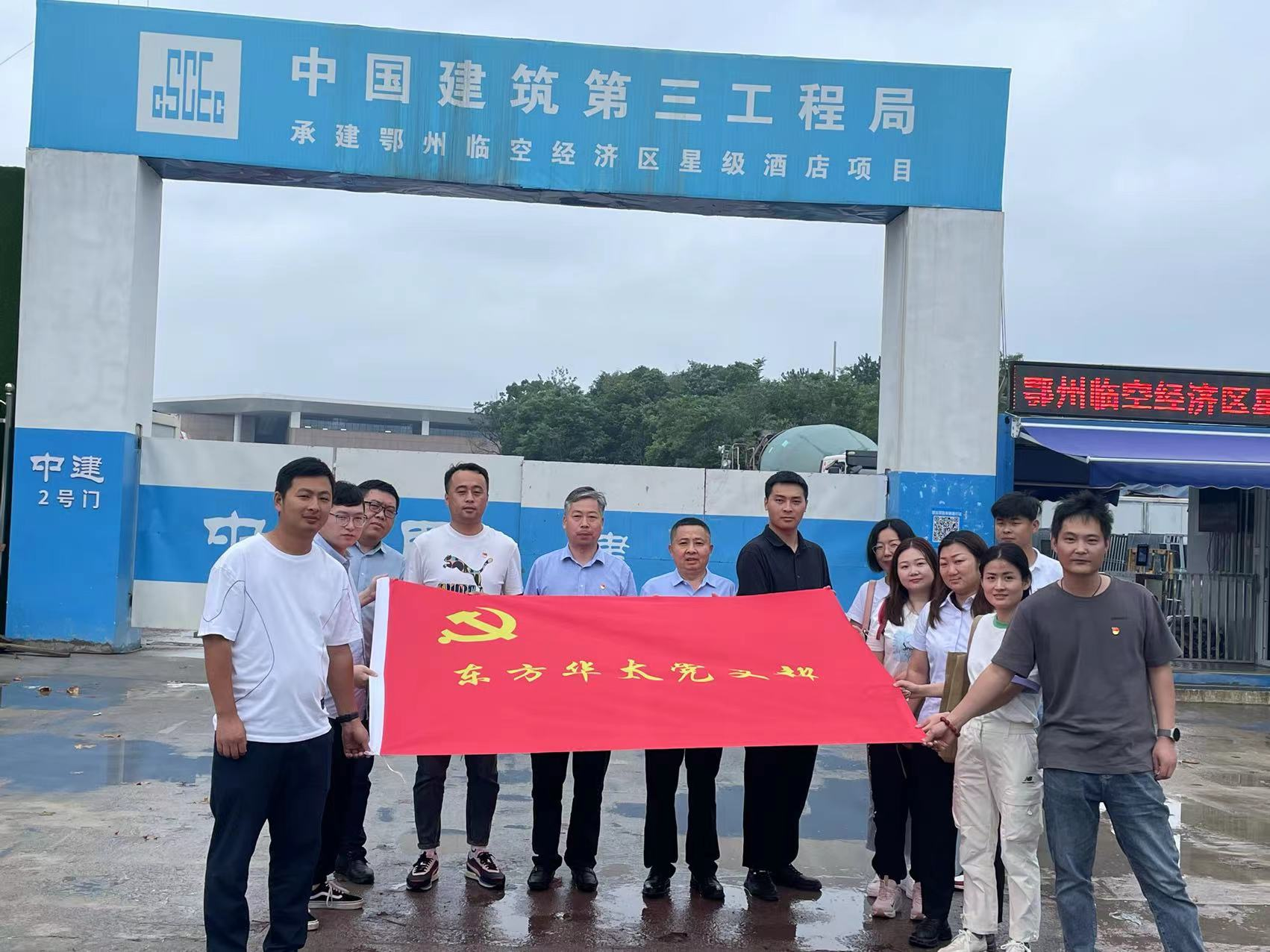 公司黨支部于2023年6月17日組織全體黨員、入黨積極分子及項目群眾代表等前往公司負責承監的鄂州市臨空經濟區星級酒店項目開展迎七一“學思想、強黨性、重實踐、建新功”主題教育與項目聯建活動。