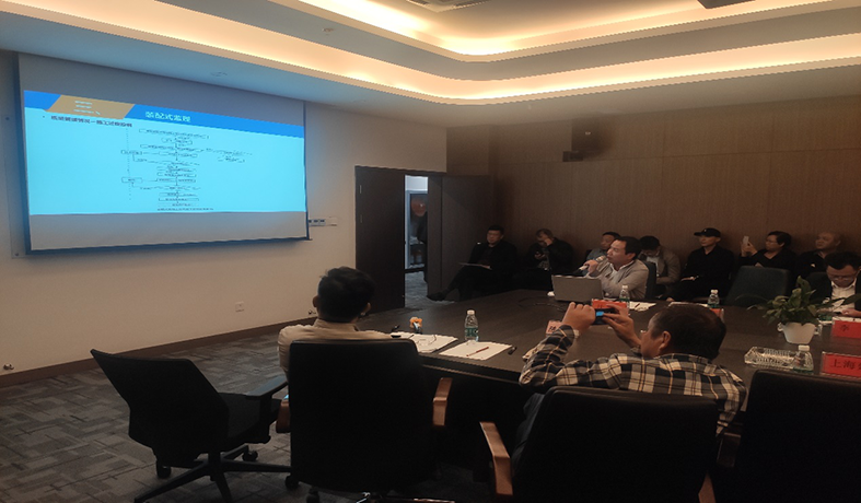 在參觀實體生產后各單位代表開展了技術交流會。交流會先以三個視頻短片介紹了裝配式建筑施工流程為開始,然后美好裝配武漢設計院院長李政詳細介紹了裝配式發展、美好裝配式施工工藝流程、美好裝配技術體系優點等,北京東方華太美好項目總監李晨介紹了在美好項目監理過程中預制構件驗收、安裝驗收質量控制、安全控制等情況,而后各參會代表就裝配式驗收、檢測等裝配發展中難點問題進行了熱烈討論。